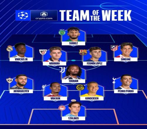 欧冠官方公布了联赛阶段第7轮的最佳阵容,维尼修斯、费尔明、范戴克、朱利亚诺-西蒙尼在列。欧冠联赛阶段第7轮最佳阵容守门员:措拉基斯(奥林匹亚科斯)后卫:侯赛因诺夫(卡拉巴赫
